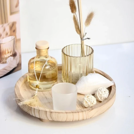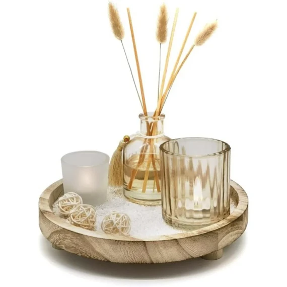 Gardenia Scented Diffuser Set with Scented Candles and Wooden Tray (7 Pcs)