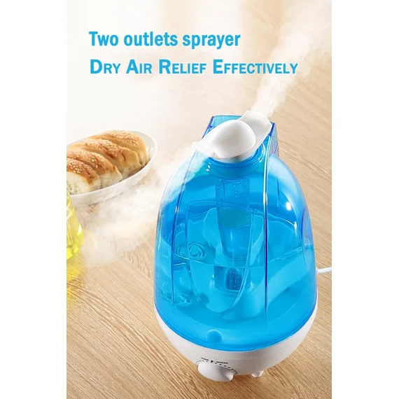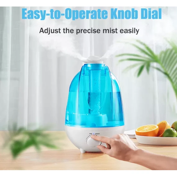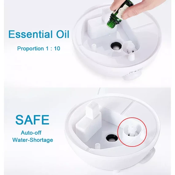 -This 4L large capacity humidifier can add easily soluble essential oil, double mouth spray, large volume spraying, mist quantity adjustment knob, red, blue, green 3 colors lamp ing display, loved by families.