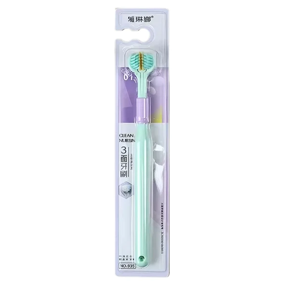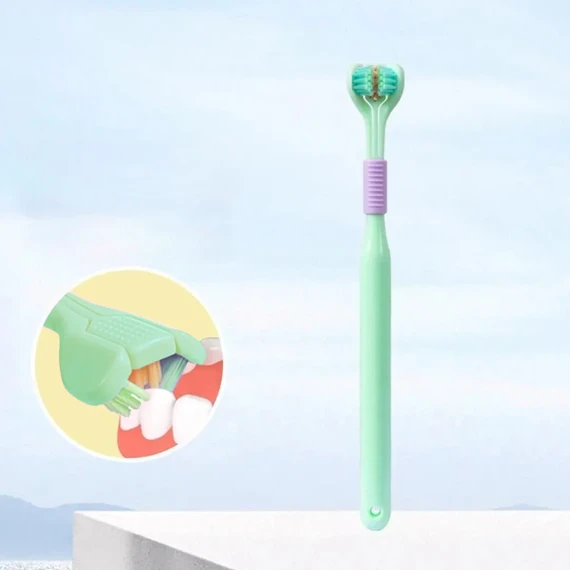 A unique cleaning experience with three sets of V-shaped bristles that surround the teeth from all sides, covering the entire surface and reaching deep into the gums.