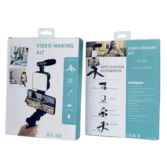 عصا تصوير لاسلكية بحامل ثلاثي القوائم وإضاءة وميكروفون مع جهاز تحكم (AY-49)