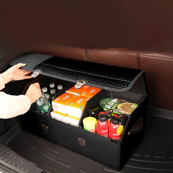 An elegant and practical design aimed at efficiently organizing and arranging the contents of the rear car trunk, making it easier to find necessities and tools, is considered ideal for travel and camping.