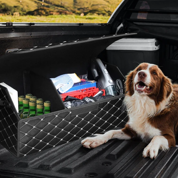 The organizer consists of a spacious main section that you can divide into two sections through the removable attached divider, ideal for holding tools, drinks, snacks, toys, clothes...