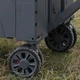 this shopping cart is equipped with 12 cm enlarged and widened off-road wheels, highly elastic shock absorbers, compression and wear resistance; 2 rear wheels with brake buttons can prevent the cart from slipping when not in use, safer and more reliable; And it is suitable for grass, plains, rough sandstone floors and more