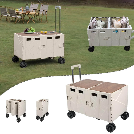 this folding cart can be used as a shopping trolley, art trolley, office supply organizer, household item organizer, temporary stool and more; It is suitable for school, warehouse, home, shop, travel, camping, picnics, festivals and moving, a gift for business representatives and craftsmen