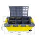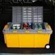 The upper layer is divided into three sections designed as small boxes with secure lids, each section equipped with dividers for further organization.
