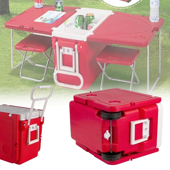 Ideal for camping trips, outdoor parties, barbecues, or any outdoor activity where you might need a cold drink and a place to sit.