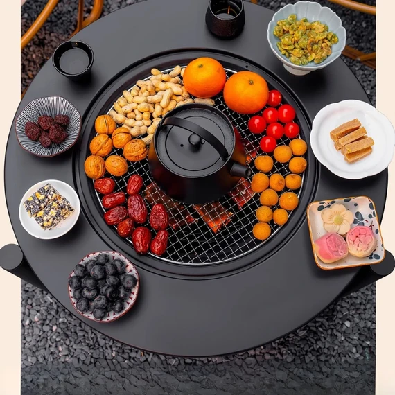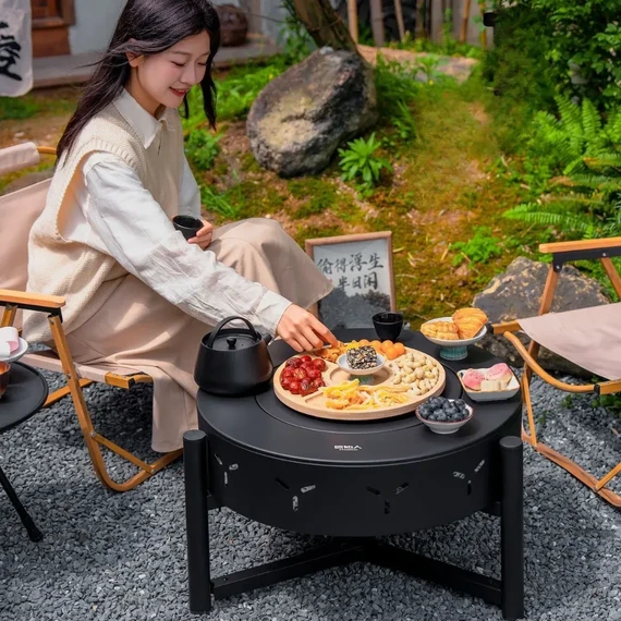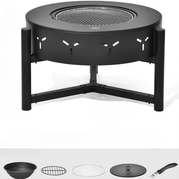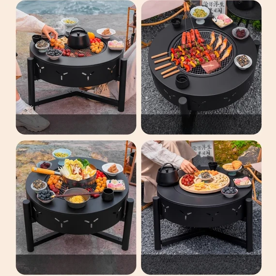 Made of heat-resistant materials with a protective grill and secure handles, it provides a warm and enjoyable atmosphere in the garden or while camping.