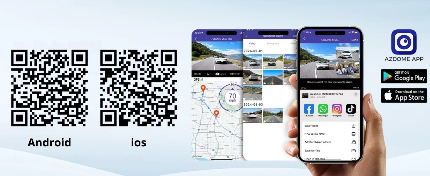 You can easily control the camera via the AZDOME app compatible with smartphones, allowing you to watch videos, adjust settings, and control remotely via WiFi.