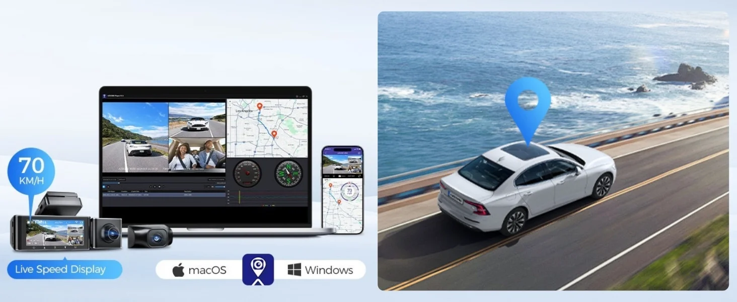 With fast location tracking support, the camera provides precise information about your location and speed while driving.