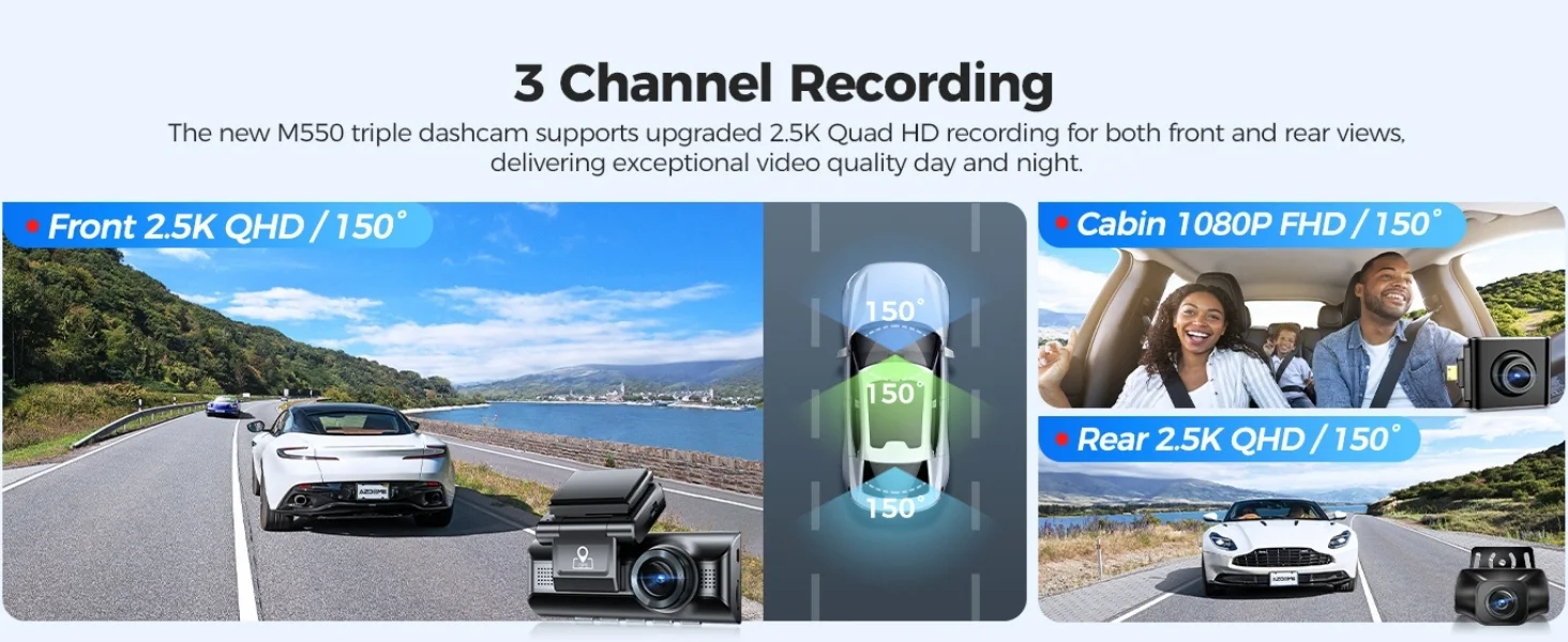AZDOME M550 Max 3 Channel Dash Camera 4K with Wi-Fi