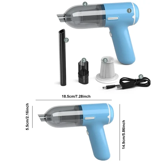 A small, portable device designed to clean small spaces in cars and homes. With a power of 120 watts, it is equipped with a motor with a high suction power of 5000 Pa.
