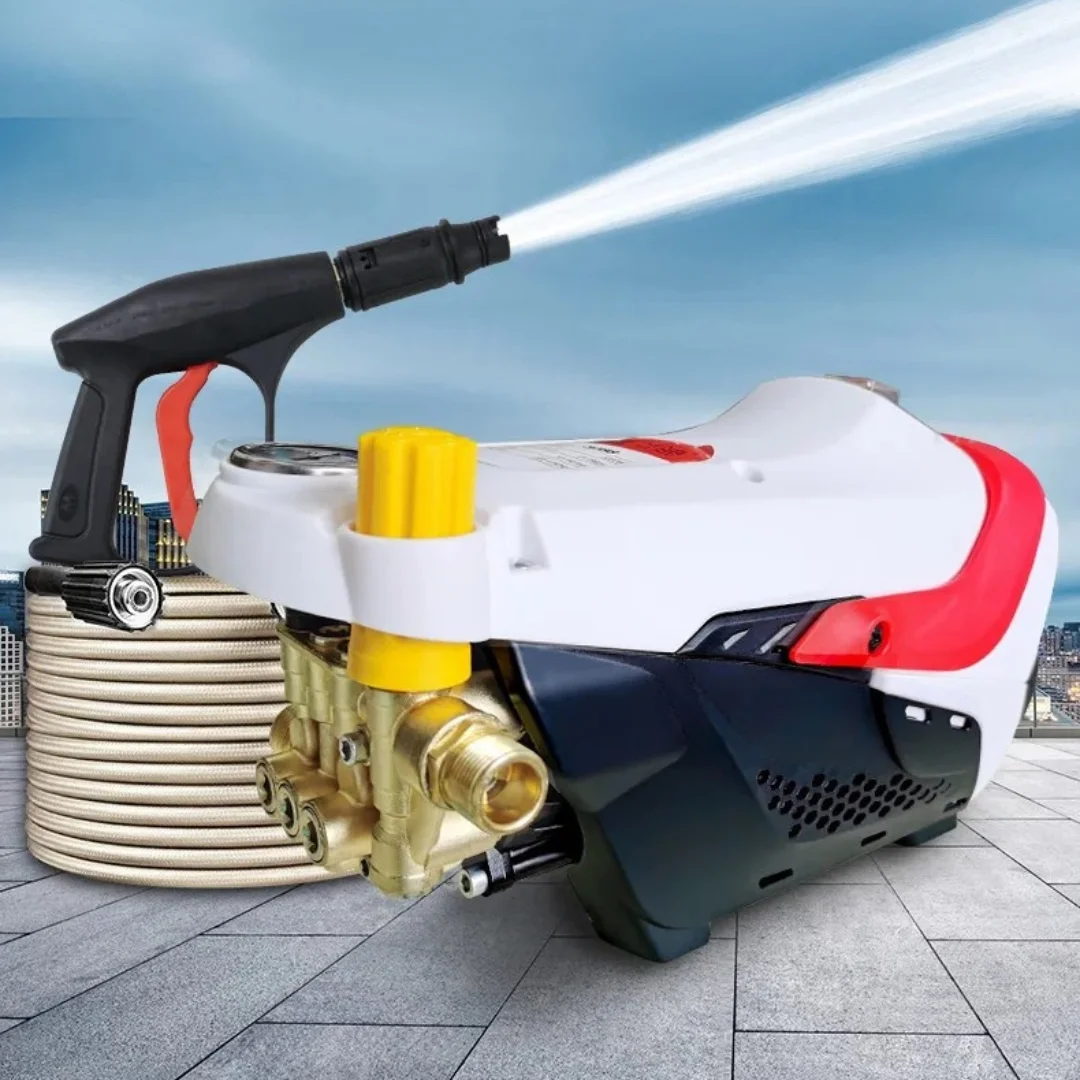Equipped with a main power switch and an integrated pressure gauge for accurate performance monitoring, along with a top handle for easy carrying.