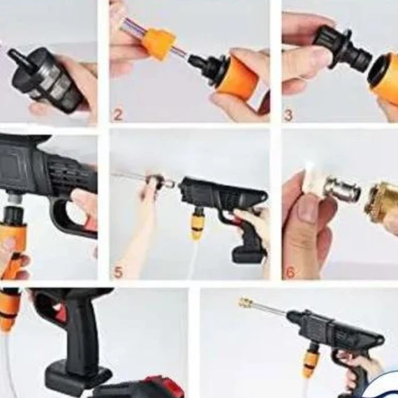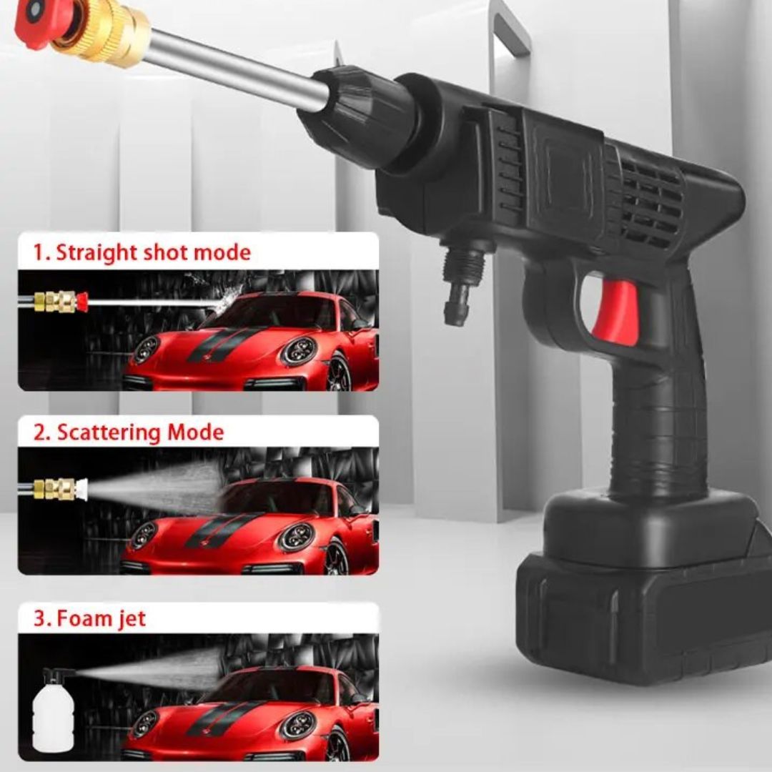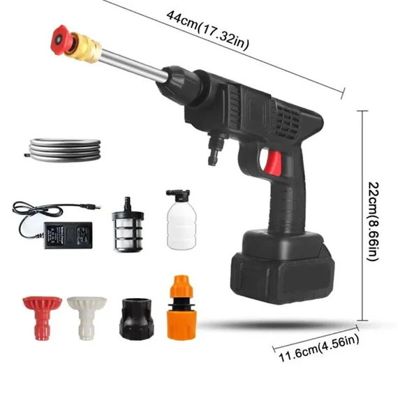 Car wash Gun is the ideal tool for washing anytime, anywhere. It features high-pressure water with a maximum of 30 bar (435 psi) pressure and a water flow rate of 4 liters per minute. Cordless and hand-held with a 300-watt power, it becomes your perfect assistant during cleaning tasks.