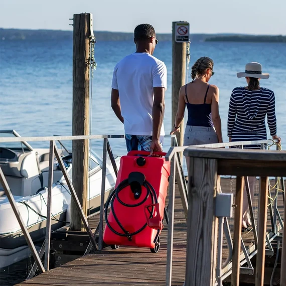 The tank offers a large storage capacity of up to 53 liters. With its wheels, it can be easily moved even when full.
