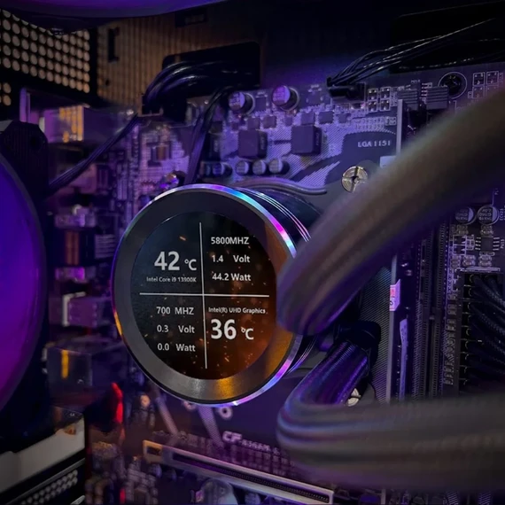 A precision-machined copper water block and 3-stage motor pump provide a cooling flow of up to 1.6 liters per minute for high-performance CPUs.