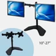 This stand features double-link swing arms that tilt, swivel, and adjust in height independently for each monitor. Find the perfect viewing angle to reduce eye strain, neck pain, and back discomfort.