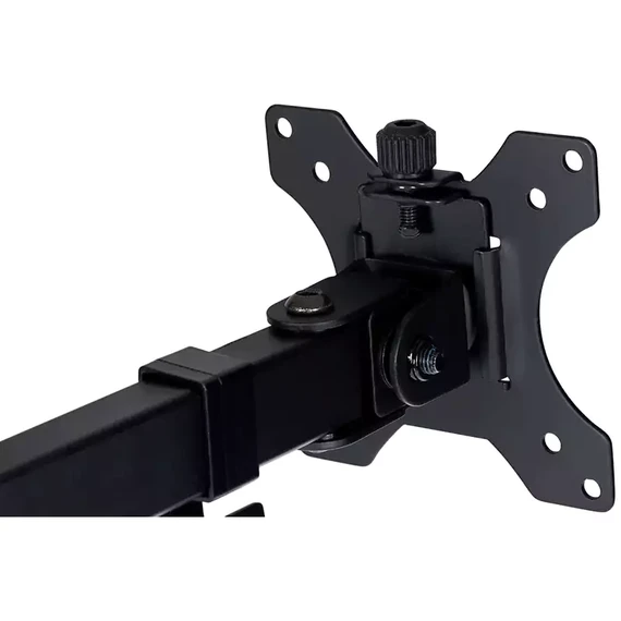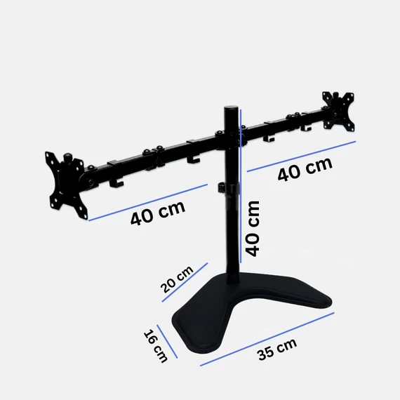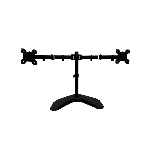 The stand supports two monitors, from small 10" screens to large 27" displays, as long as they meet VESA standards (most monitors do). Removable VESA plates make installation quick and easy.
