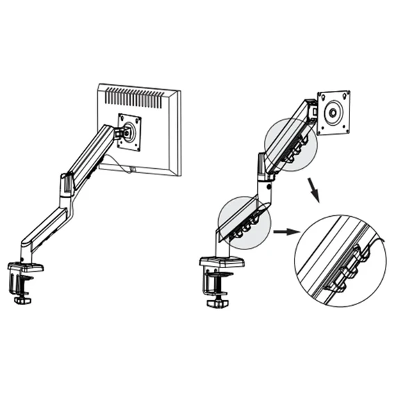 The gas spring mechanism provides complete freedom to adjust the monitor’s height and angle smoothly, making it the ideal solution for gaming setups and professional workstations.