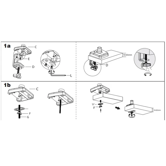Equipped with two mounting options: a C-Clamp and a Grommet base, allowing easy installation on different types of desks with strong, stable support.
