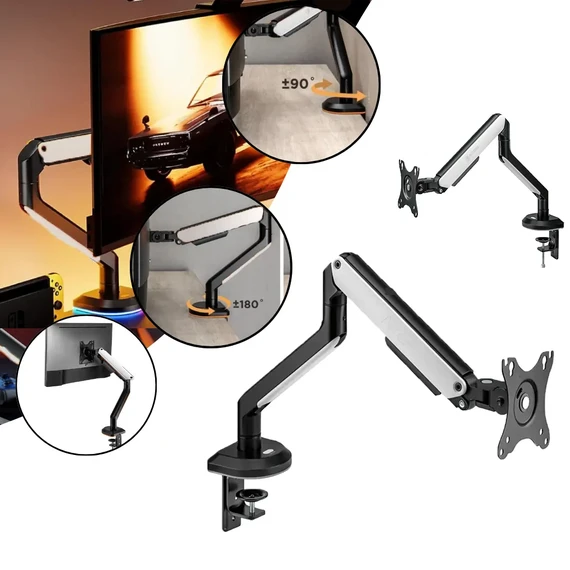 يعمل الذراع بتقنية زنبرك الغاز، ما يتيح لك التحكم السهل في حركة الشاشة وضبط ارتفاعها وزاويتها بسلاسة، بفضل هذا النظام، يمكنك ضبط الشاشة بسهولة والوصول إلى الوضعية المثالية بلمسة واحدة دون مجهود إضافي.