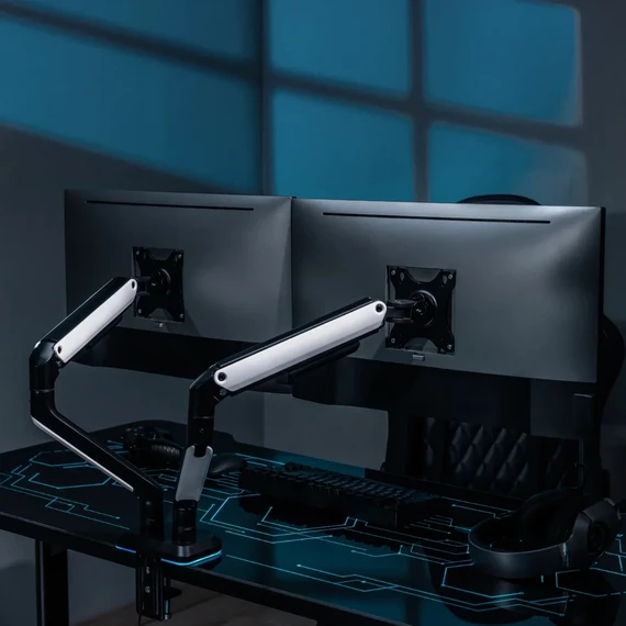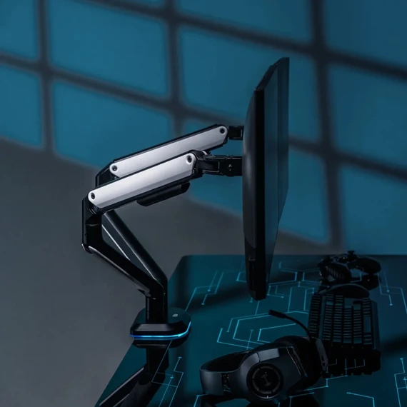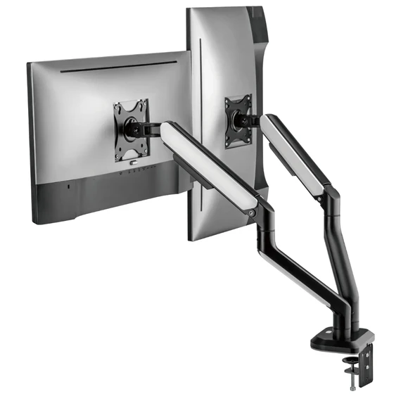 Made of aluminum, each arm supports up to 9 kg, ensuring screen stability.
