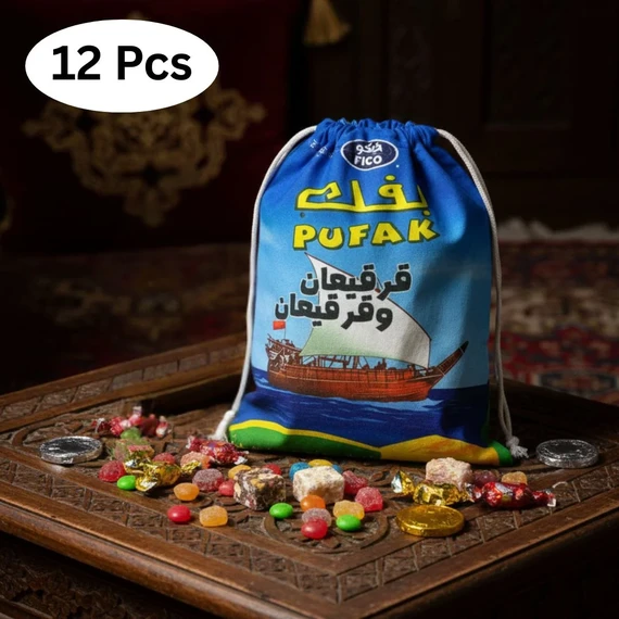أكياس القرقيعان القماشية لتوزيع الحلوى والسكاكر (عدد 12)
