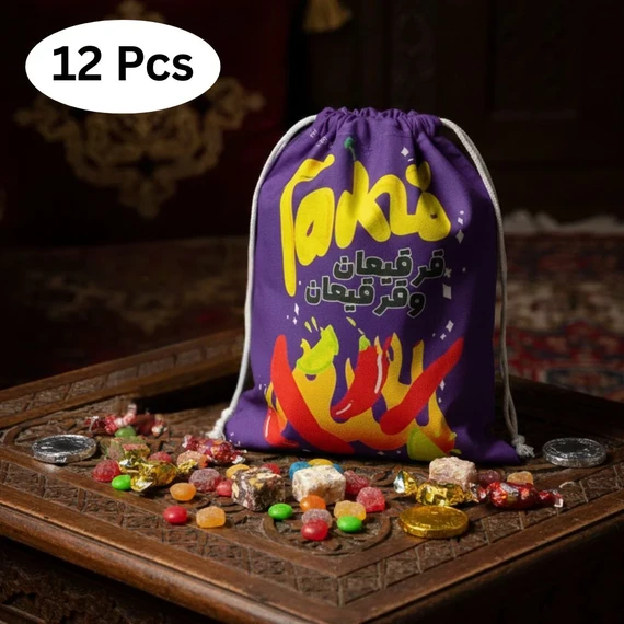 أكياس القرقيعان القماشية لتوزيع الحلوى والسكاكر (عدد 12)