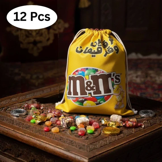 أكياس القرقيعان القماشية لتوزيع الحلوى والسكاكر (عدد 12)