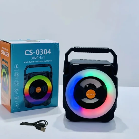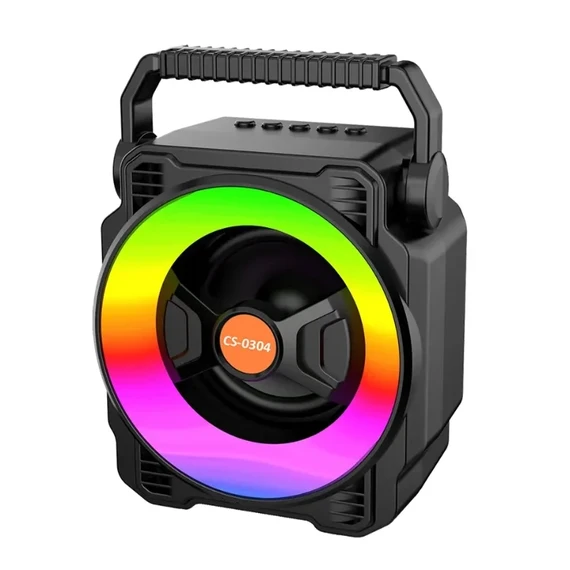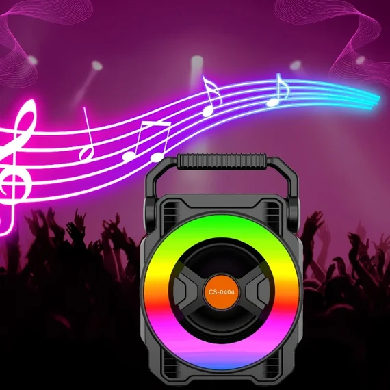 The CS-0404 Bluetooth speaker features a compact, rugged design with a handle for easy carrying.