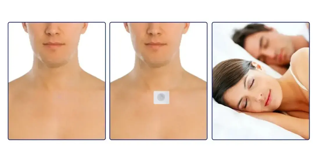 Simple and lightweight design applied to a specific point between the collarbones to stimulate nasal breathing and relieve airway obstruction.