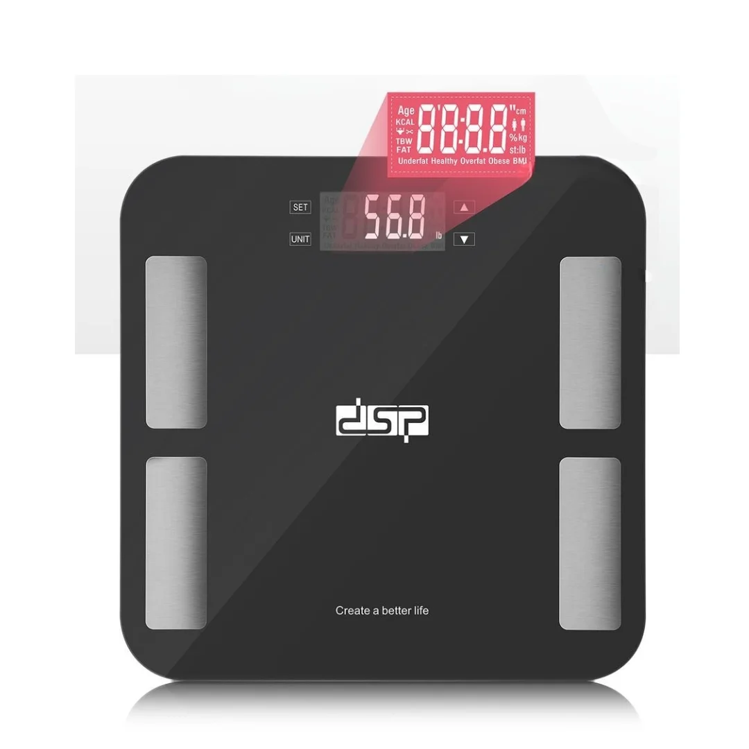The scale provides comprehensive insights into fitness levels and body composition, measuring body fat percentage,