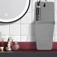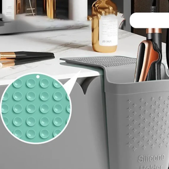 The back is equipped with a suction base that secures the holder firmly to edges or flat surfaces, allowing it to hang securely beside sinks or on tabletops without slipping.