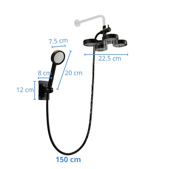 دش مزدوج برأس رباعي وخرطوم بطول 150 سم