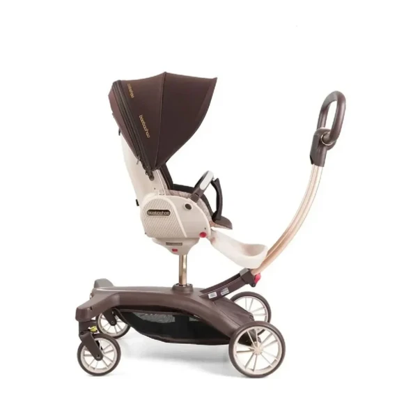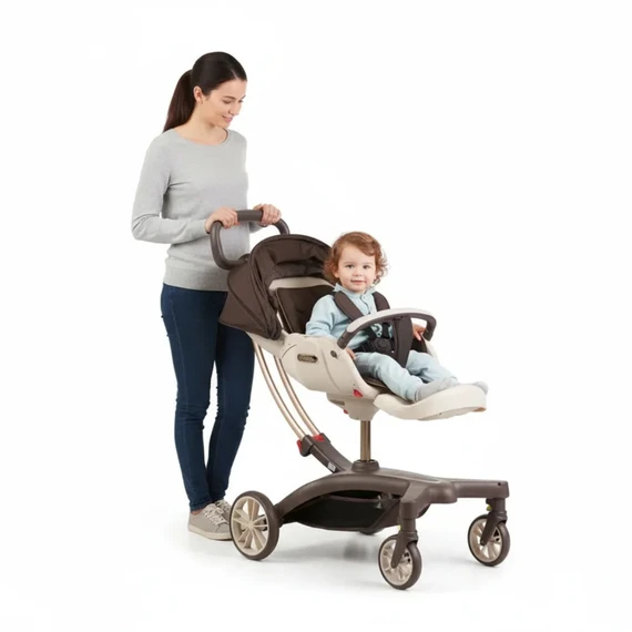 The 360° rotating seat allows the baby to face the parent or outward, maintaining interaction and visibility during movement.