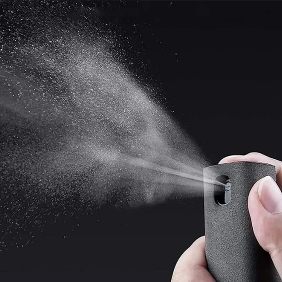 جسم البخاخ مغطى بقماش مايكروفايبر لتنظيف الشاشات من بصمات الأصابع والغبار والشحوم والأوساخ دون ترك خطوط أو خدوش.