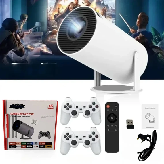 Smart 4k Android 11 Portable Game Projector with Two Controllers