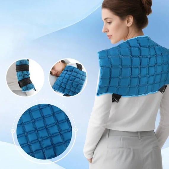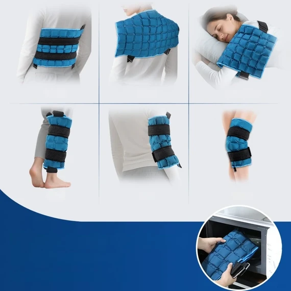 A medical-grade pad designed to deliver targeted hot or cold therapy for various body areas including the back, shoulders, knees, arms, and legs.