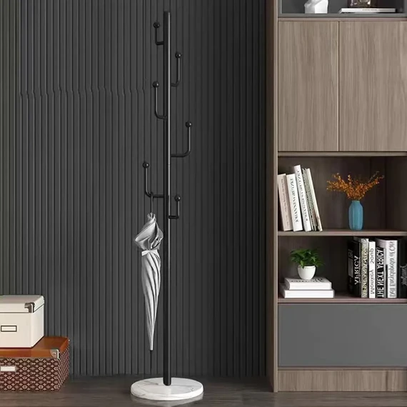 Provides 6 hooks for hanging coats, bags, scarves, and hats, along with a marble base offers extra space for storing shoes or accessories.