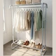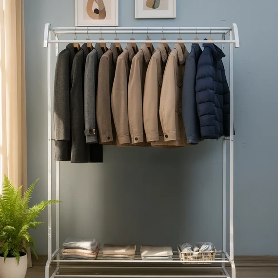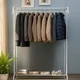A white metal clothes rack that combines elegance with practicality, ideal for bedrooms, entryways, and dressing rooms.