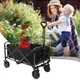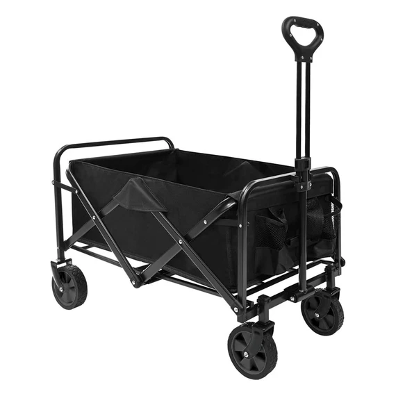 The cart's design allows it to be folded for easy storage and transportation, making it ideal for multiple uses such as gardens, homes, warehouses, and beaches.