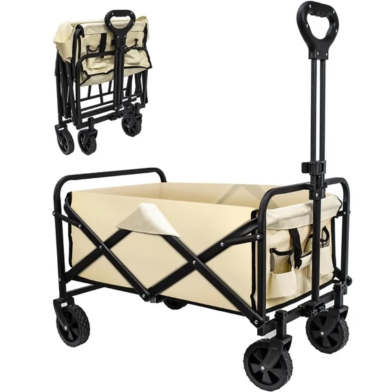 360 degree swivel front wheels enable the cart to move smoothly in any occasion, such as camping, shopping and gardening.