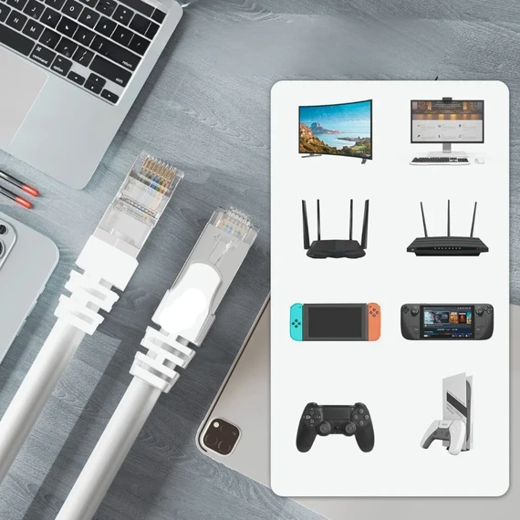 Cat 6 Ethernet Cable can connect to hardware devices on Gigabit Local Area Networks (LANs), such as PS5/4/3, XBox, switches, game consoles, PCs, laptops, modems, routers, smart TVs, etc.