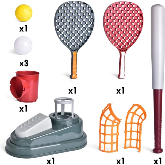 - 2 IN 1 BUNDLE – The Outdoor Sports Pitching Machine from Fun Little Toys brings 2 exciting sports into your backyard! These pitching machines come alongside 1 extendable baseball bat, 2 tennis racquets, 3 play baseballs, and 1 play tennis ball.