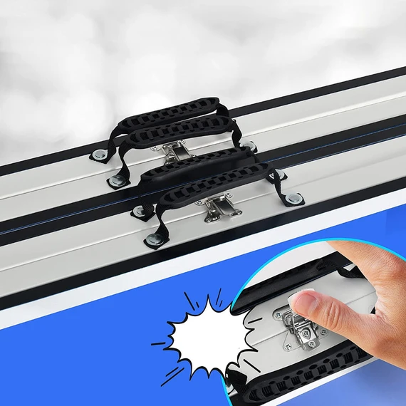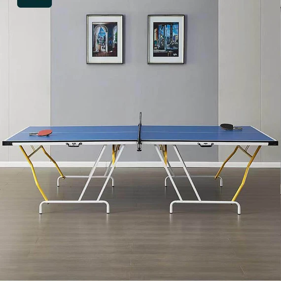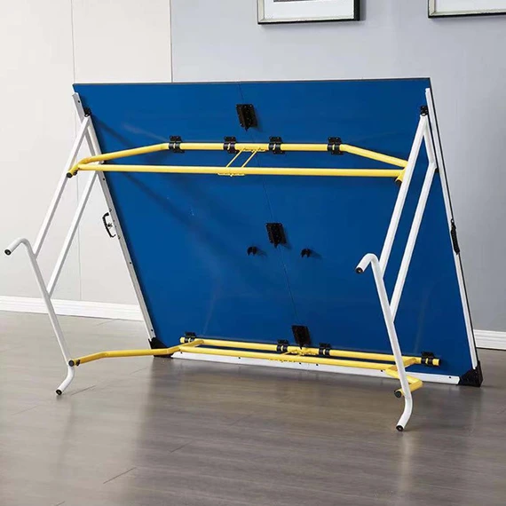 This ping pong table set has a 2-piece foldable design. Easy to move and store, it is perfect for enjoying a game of table tennis without taking up too much space.