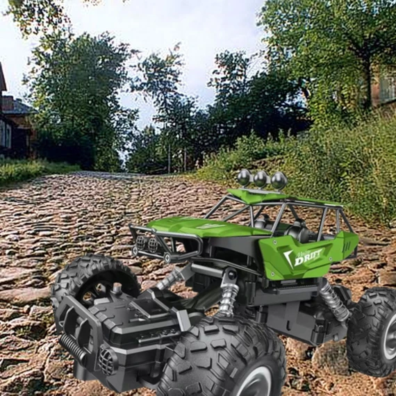 The mountain car stands out with its innovative design and unique driving style, providing a thrilling experience as it slides sideways and performs other impressive maneuvers on the road. It is controlled wirelessly through a 2.4GHz remote control device.