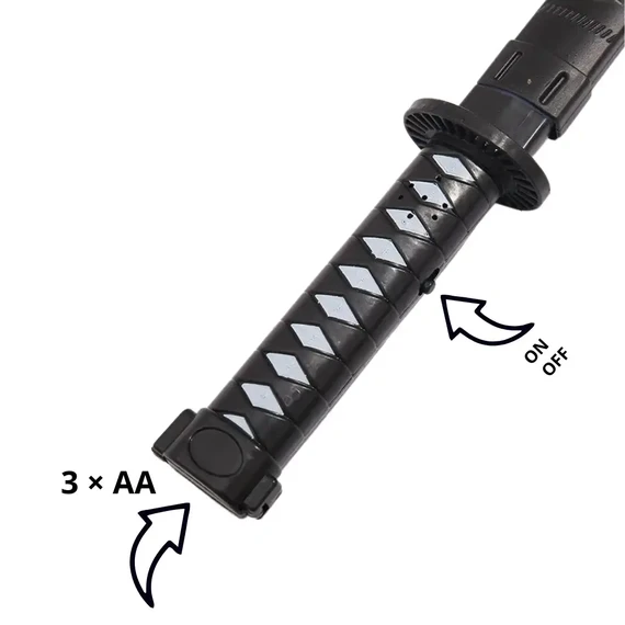 مزود بـ إضاءة LED ساطعة تمنح السيف توهجاً رائعاً أثناء الاستخدام، مما يجعله مثالياً للعروض التنكرية، الاحتفالات، وألعاب الخيال.